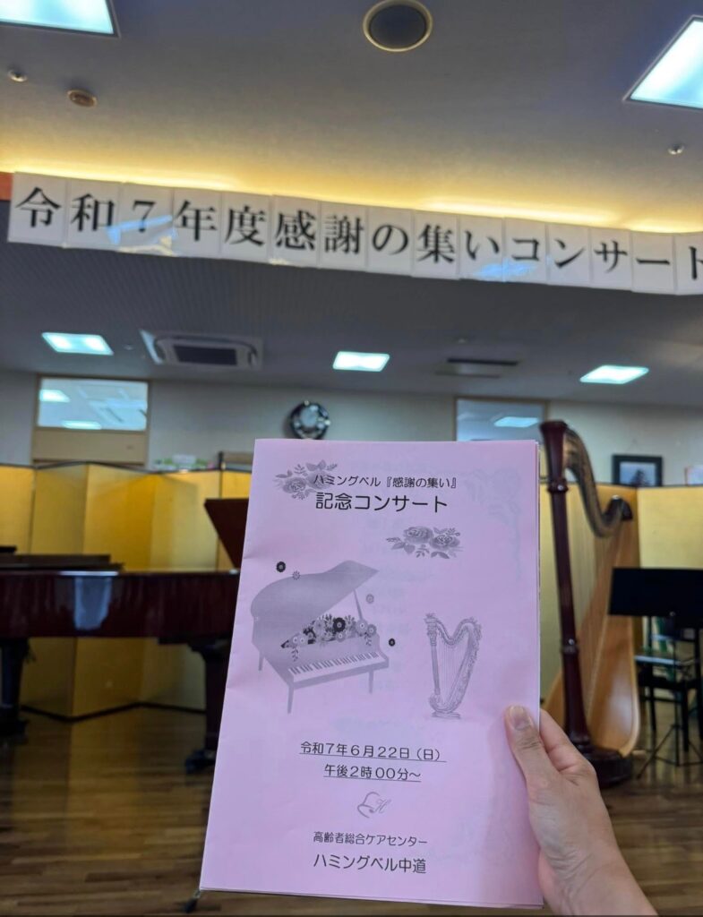 午後からは中道校区にある高齢者福祉施設「ハミングベル中道」で創立20周年を祝う「感謝の集い」記念コンサートへ🎵